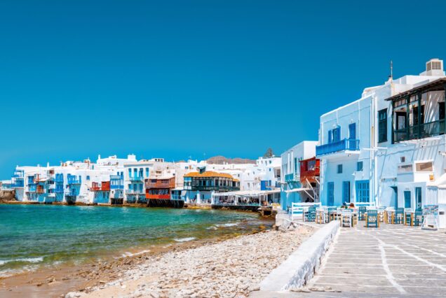 admira la singular fusión de la arquitectura veneciana y cicládica. Alojamiento en el puerto.