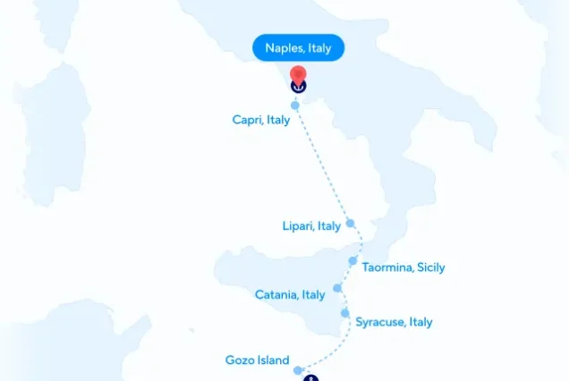 Nápoles – Isla de Capri – Lipari – Taormina – Catania – Siracusa – Gozo – La Valeta