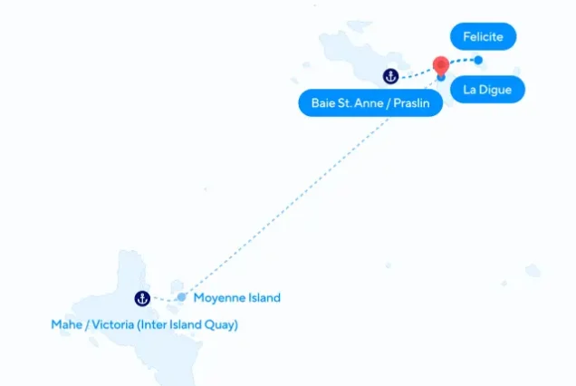 Embarque a las 13 h. Por la tarde zarparemos hacia la deshabitada isla Felicité para hacer snorkel o para una excursión opcional de buceo. Por la noche partimos dirección a La Digue. Anclaje delante del puerto Noche en La Digue